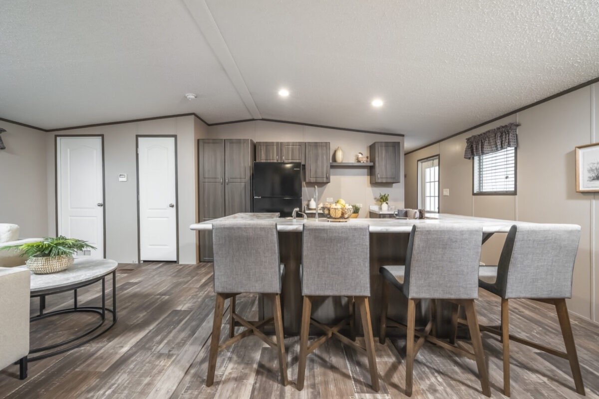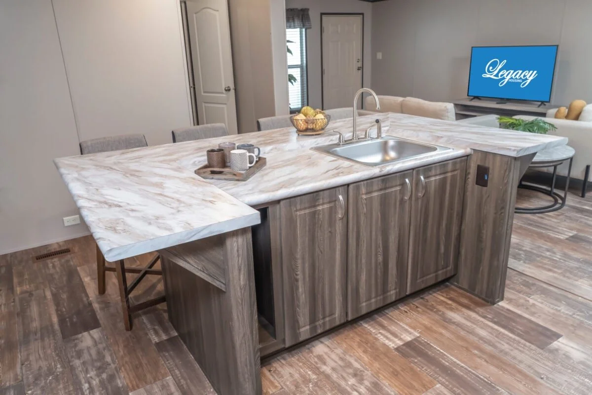 👩🍳 Functional Kitchen Design: Kitchen features a large center island with seating, ample cabinet storage, pantry space, and room for casual meals or entertaining